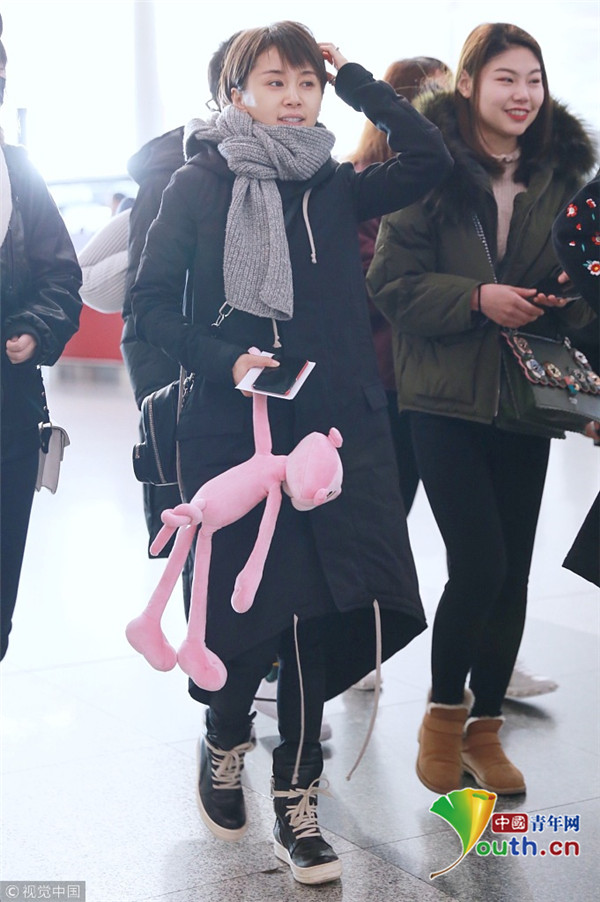 王子文素顏現(xiàn)身羞澀撓頭 手提“粉紅豹”童心未泯