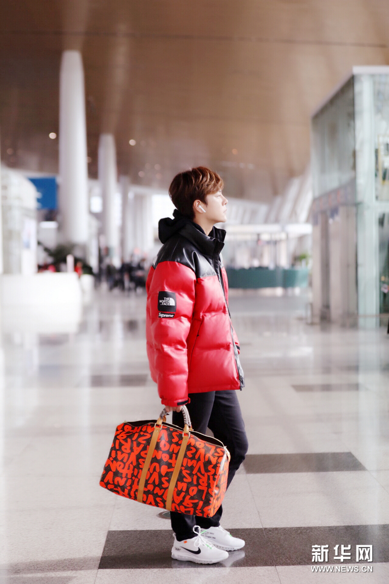 徐海喬機場秀大長腿 紅色羽絨服個性時髦