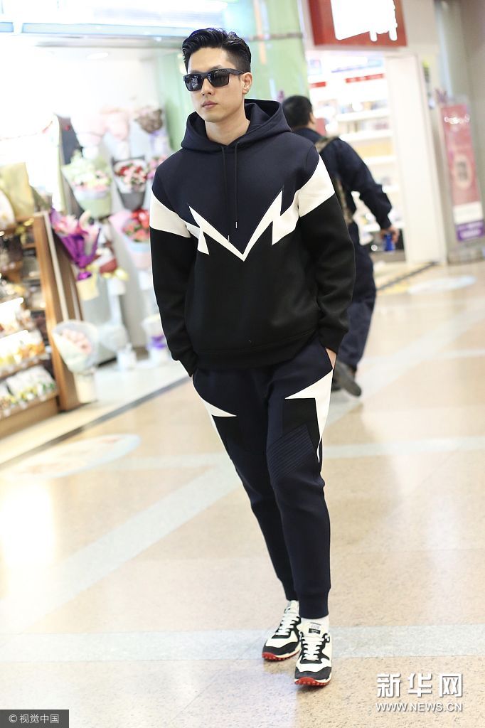 凌瀟肅迎運動套裝低調(diào)現(xiàn)身 戴墨鏡型男范