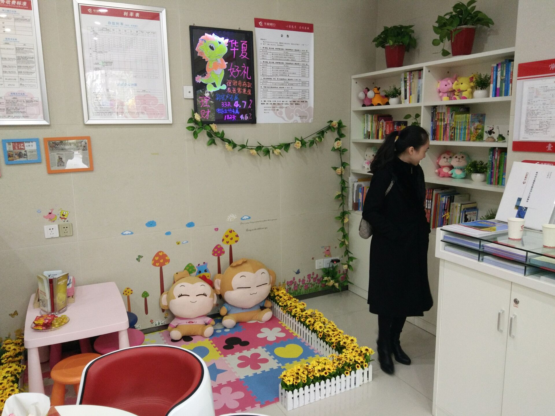 網(wǎng)點(diǎn)內(nèi)還設(shè)有圖書(shū)角、兒童樂(lè)園