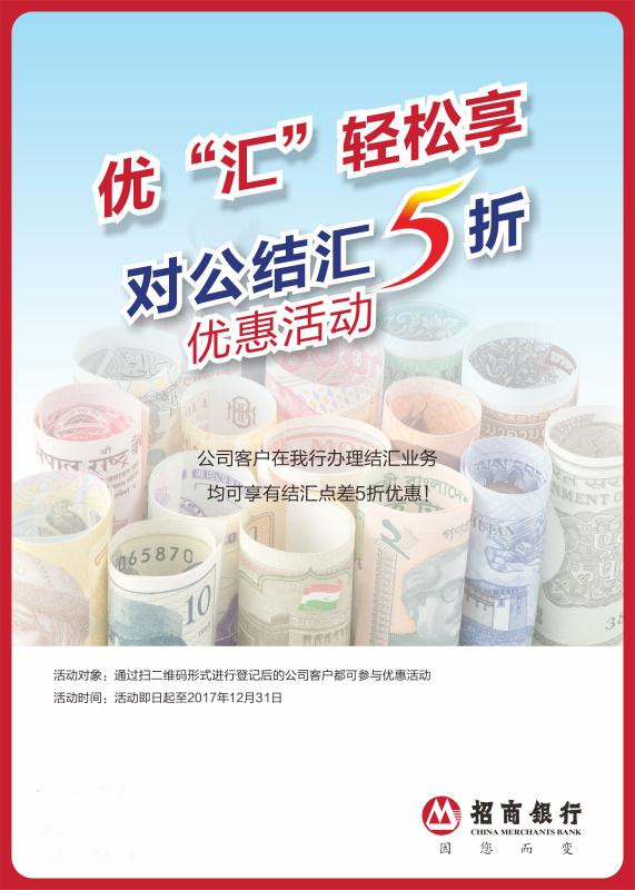 招商銀行深圳分行針對(duì)公司客戶推出結(jié)匯五折優(yōu)惠