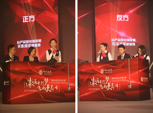 在辯論環(huán)節(jié),選手們采取3:3對抗辯論形式,圍繞著 “美元加息,現(xiàn)階段配置美元資產(chǎn)是否合理?”、“在服務(wù)客戶時(shí),關(guān)系維護(hù)和專業(yè)技能,哪個(gè)更重要?”兩大辯題進(jìn)行辯論,現(xiàn)場金句頻現(xiàn),精彩紛呈。此環(huán)節(jié)設(shè)計(jì),不僅考驗(yàn)理財(cái)經(jīng)理們的個(gè)人專業(yè)技能水平,還考驗(yàn)團(tuán)隊(duì)臨場發(fā)揮能力。
