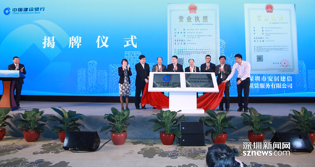 現場,建行參與投資的2家住房租賃服務公司——由建信信托控股的建信住房服務(深圳)有限公司(以下簡稱“建信住房”)及建行與深圳市人才安居集團合資的安居建信租賃服務有限公司正式揭牌。