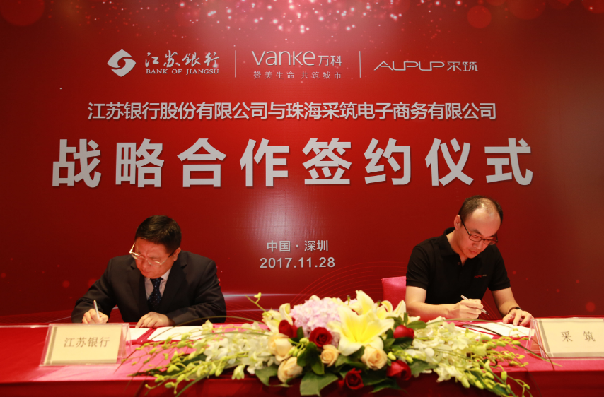 11月28日,采筑電商平臺(tái)發(fā)布會(huì)暨與江蘇銀行戰(zhàn)略合作協(xié)議簽約儀式在前海萬科國(guó)際會(huì)議中心成功舉行。萬科集團(tuán)副總裁王蘊(yùn)女士和江蘇銀行運(yùn)營(yíng)總監(jiān)趙輝先生受邀出席儀式并致辭,江蘇銀行行長(zhǎng)助理兼深圳分行行長(zhǎng)李敏與采筑電商平臺(tái)總經(jīng)理都軍代表雙方簽署戰(zhàn)略合作協(xié)議??傂泄緲I(yè)務(wù)部周愛國(guó)總經(jīng)理、深圳分行張慶光副行長(zhǎng)等一行出席發(fā)布會(huì)暨簽約儀式。