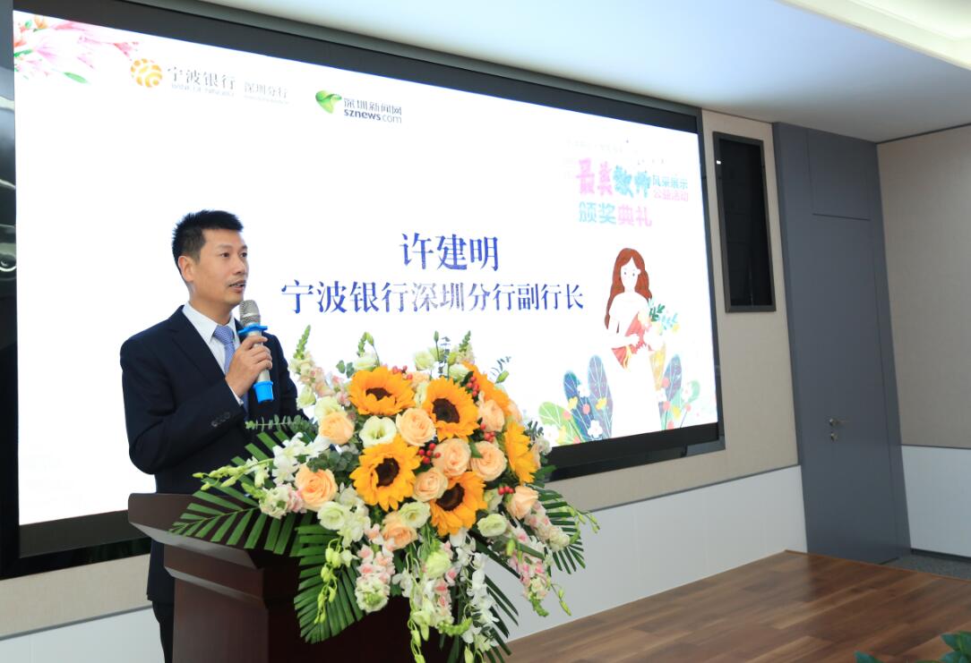 在頒獎儀式現(xiàn)場,寧波銀行深圳分行副行長許建明向全體教師致以節(jié)日的問候,他在致辭中表示:“寧波銀行扎根深圳十余載,在服務(wù)廣大深圳市民朋友的過程中,一直以教師群體的‘愛崗敬業(yè)、無私奉獻(xiàn)’精神作為自己的標(biāo)桿?!蓖瑫r,許建明還表示,這次“鵬城最美教師”活動讓自己感觸良多,寧波銀行在以后工作過程中,會投入更多的精力去推進(jìn)惠民工程,開展更多的公益項(xiàng)目。