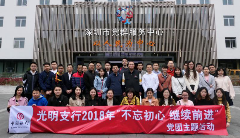 為進(jìn)一步豐富黨團(tuán)組織文化,增強(qiáng)黨員、團(tuán)員干事拼搏、創(chuàng)先爭優(yōu)的意識,提升團(tuán)隊(duì)凝聚力和向心力,12月8日,中國銀行深圳光明支行前往深圳市黨群服務(wù)中心開展“不忘初心繼續(xù)前進(jìn)”黨團(tuán)主題活動,該行轄內(nèi)中共黨員、預(yù)備黨員、發(fā)展對象、積極分子及共青團(tuán)員共計(jì)50余人參加。
