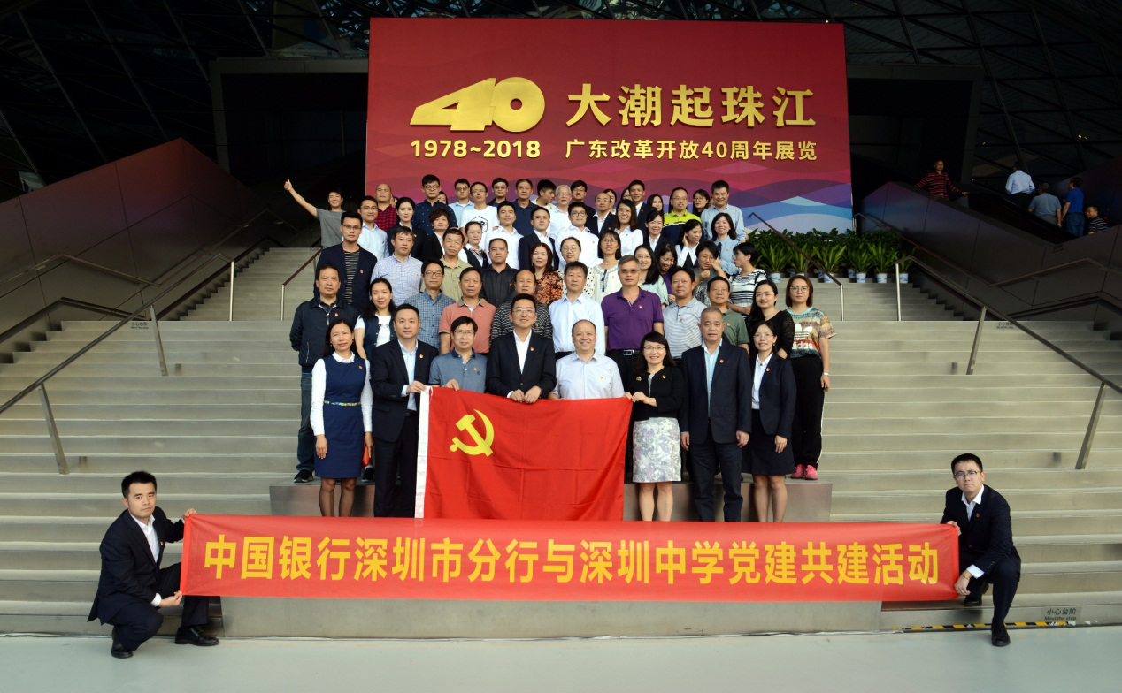 近日,中國銀行深圳東門管轄支行與深圳中學(xué)開展黨建共建活動(dòng),雙方黨員代表共同前往深圳改革開放展覽館,參觀了“大潮起珠江——廣東改革開放40周年展覽”。深圳中行蒙震紀(jì)委書記和深圳中學(xué)王東文副校長帶領(lǐng)黨員代表參加了此次活動(dòng)。