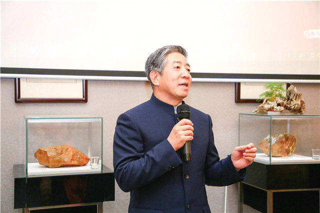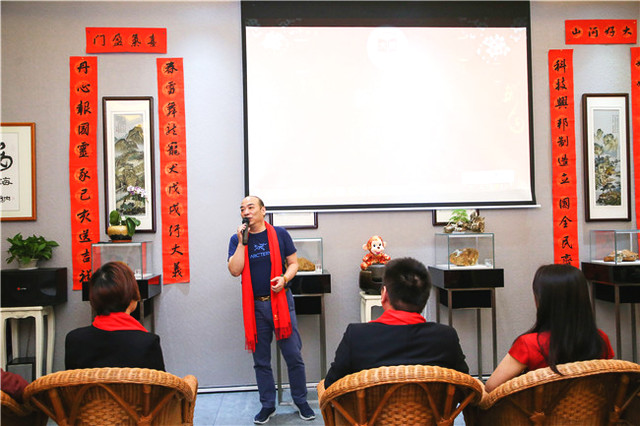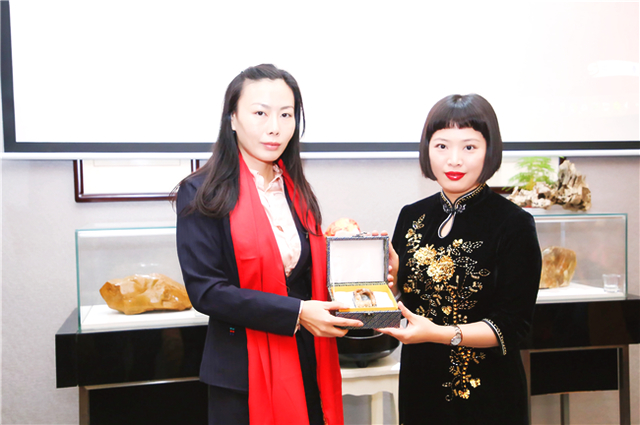 自古書法印章不分家,作品必須蓋印才算完整。本次活動(dòng)場(chǎng)地提供田黃博物館、希雍天石董事長(zhǎng)繆建生為到場(chǎng)嘉賓和校友,受邀分享田黃石科普知識(shí),介紹歷經(jīng)1.8億萬(wàn)年形成的田黃石種類及特點(diǎn)。 歡聚活動(dòng)上,田黃博物館特別挑選了一枚“溫、潤(rùn)、細(xì)、膩、凝、潔” 、印面方正碩大,雙龍雕刻立體,栩栩如生的昌化田黃貫斗雙龍印璽,捐贈(zèng)給文學(xué)社。 收到如此珍貴的禮物,求是文學(xué)社秘書長(zhǎng)樓蓉表示:非常感謝田黃博物館的支持與厚禮,后期將委托機(jī)構(gòu)對(duì)這塊印石義拍或義賣,所得將以求是文學(xué)社和田黃博物館名義,捐贈(zèng)給公益項(xiàng)目,會(huì)讓這一珍貴的禮物,發(fā)揮更多的社會(huì)價(jià)值。