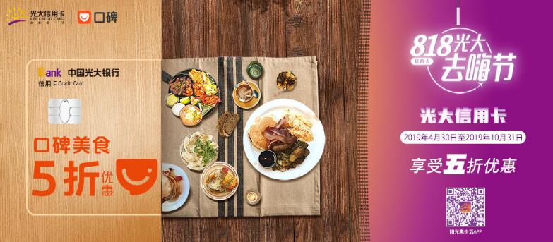 活動三:2019年6月1日-2019年8月31日,每周五、周六、周日10:00至24:00點整活動期間支付寶實名認證個人用戶在口碑指定商圈,用戶使用支付寶賬戶綁定光大銀行信用卡,通過口碑手機客戶端或支付寶-口碑頁面購買線上商圈通用券,或進行當面付支付消費,可有機會享受5折優(yōu)惠,最高封頂優(yōu)惠50元,活動期間每天限20000個優(yōu)惠名額,用完即止?;顒悠陂g同一用戶每天限享1次優(yōu)惠,同一用戶每月最多可享受2次優(yōu)惠。