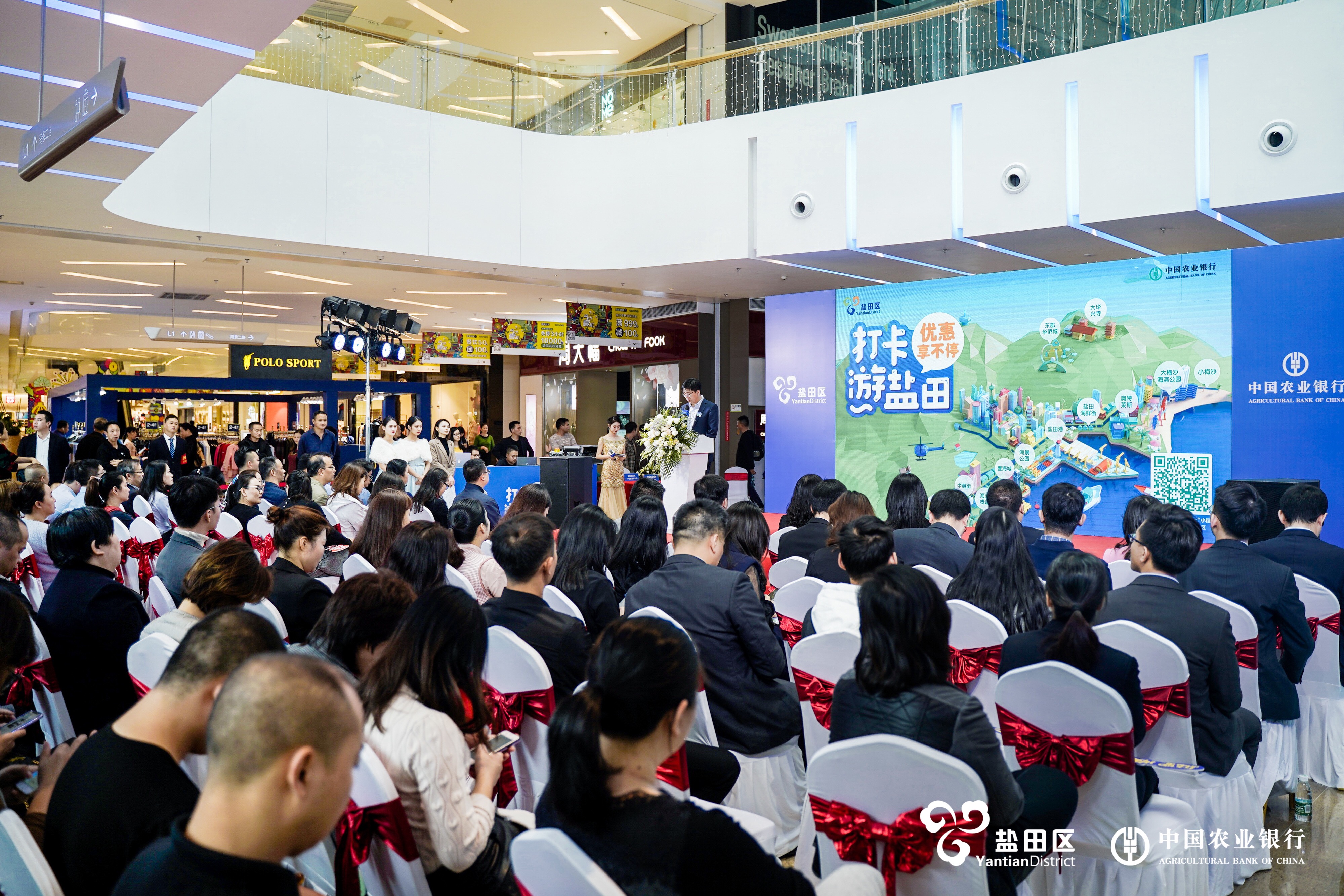 2019年12月17日上午,由深圳市鹽田區(qū)文化廣電旅游體育局主辦,農(nóng)行深圳分行承辦的鹽田區(qū)第二期“打卡游鹽田”活動(dòng)發(fā)布會(huì)在鹽田ONE MALL商場舉行。鹽田區(qū)副區(qū)長羅毅、鹽田區(qū)文化廣電旅游體育局局長彭潔、鹽田區(qū)文化廣電旅游體育局副局長王智華、農(nóng)行深圳分行副行長魏秉全、農(nóng)行深圳分行信用卡中心總經(jīng)理張珂等相關(guān)領(lǐng)導(dǎo)出席發(fā)布會(huì)。會(huì)上,鹽田區(qū)副區(qū)長羅毅、農(nóng)行深圳分行副行長魏秉全先后做開幕致辭與活動(dòng)方案,鹽田區(qū)文化廣電旅游體育局局長彭潔、農(nóng)行深圳分行信用卡中心總經(jīng)理張珂現(xiàn)場簽署了《鹽田區(qū)第二期“打卡游鹽田”活動(dòng)合作協(xié)議》,宣告活動(dòng)正式落地。