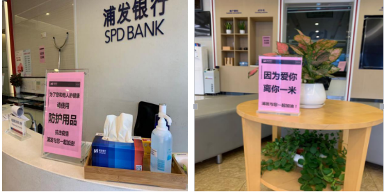 2月10日,在接到浦發(fā)深圳分行統(tǒng)一部署的復(fù)工安排后,科苑支行落實(shí)網(wǎng)點(diǎn)廳堂的各項(xiàng)防疫措施和人員復(fù)工的安全措施,在確保員工和客戶健康安全的前提下,全力保障各項(xiàng)金融服務(wù)需求。走進(jìn)浦發(fā),可以看到廳堂多處區(qū)域配備了口罩、消毒液、一次性手套等防控物資,在廳堂顯眼處設(shè)計(jì)擺放了“因?yàn)閻勰?,離你一米”等暖心提示。其中,黨員同志們帶頭在廳堂進(jìn)行宣傳指引,協(xié)助做好防護(hù)措施。