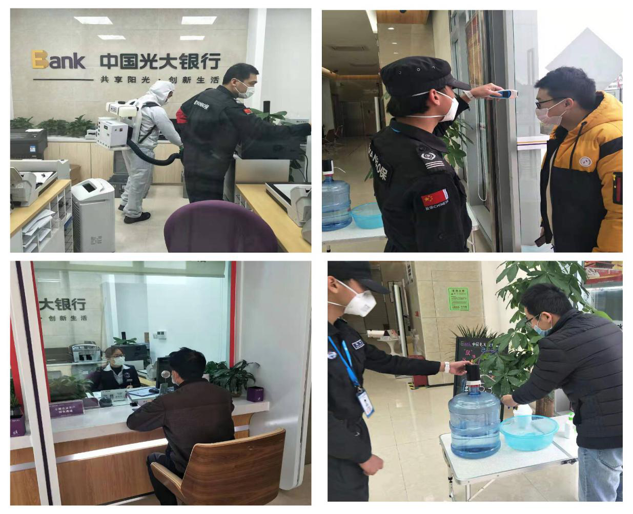 物資保障是防疫工作基礎(chǔ)性工作。復(fù)工之前,支行領(lǐng)導(dǎo)帶隊(duì)落實(shí)復(fù)工所需各項(xiàng)物資準(zhǔn)備情況,指定專(zhuān)人每天對(duì)網(wǎng)點(diǎn)進(jìn)行清潔與消毒,在所有客戶(hù)會(huì)觸摸到的公共區(qū)域貼上保鮮膜,每日三次消毒更換。要求全體上崗人員佩戴口罩、手套,做好自身防護(hù)。同時(shí),支行根據(jù)自身?xiàng)l件,在門(mén)口設(shè)置流動(dòng)水、洗手液、消毒液、紙巾、口罩回收簍等,在客戶(hù)進(jìn)入網(wǎng)點(diǎn)時(shí),要求必須佩戴口罩、測(cè)量體溫、進(jìn)行洗手登記,切實(shí)做好客戶(hù)安全防護(hù)。