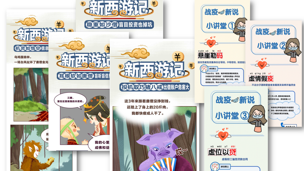 針對疫情期間頻繁出現(xiàn)電信網(wǎng)絡(luò)詐騙的情況,招商銀行深圳分行迅速反應(yīng),以原創(chuàng)漫畫、小視頻、線上直播及在線互動問答等新穎形式開展抗疫防騙線上宣教,對不同類型的詐騙套路進(jìn)行揭示和解析,如虛假售賣醫(yī)用口罩、以慈善募捐名義騙取捐款等,及時對消費者進(jìn)行風(fēng)險提示。除此之外,還以普及金融消費者享有的八項法定權(quán)利、倡導(dǎo)金融消費者依法理性維權(quán)、宣傳個人征信業(yè)務(wù)網(wǎng)上辦理、識別非法金融廣告等知識為內(nèi)容,創(chuàng)作貼合時事、實用有趣、形式多樣的宣教作品,有效提升了消費者在疫情特殊時期的金融素養(yǎng)。