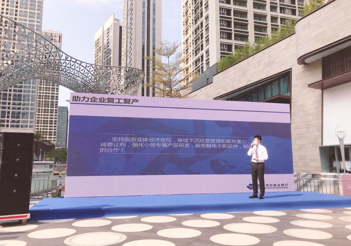 為支持復(fù)工復(fù)產(chǎn)有序開展,深圳農(nóng)商行公明支行積極響應(yīng)政府號召,履行社會責(zé)任,及時主動聯(lián)絡(luò)所在區(qū)工信局、街道企服中心、經(jīng)財辦和各股份公司,就復(fù)工企業(yè)面臨的資金周轉(zhuǎn)難題舉辦多場專場產(chǎn)品講解會。3月10日和3月18日深圳農(nóng)商行公明支行分別參與了由公明街道下村社區(qū)和光明區(qū)工信局(金融工作局)主辦的銀企見面會和銀政企直播,與區(qū)域內(nèi)的困難租戶以及企業(yè)代表進(jìn)行了“面對面”討論。在見面會和直播中,深圳農(nóng)商行公明支行闡述了深圳農(nóng)商行作為本土銀行服務(wù)中小微企業(yè)的戰(zhàn)略定位,并對支持科創(chuàng)企業(yè)發(fā)展的政策、抗疫系列產(chǎn)品、政府訂單貸、速抵貸等特色授信產(chǎn)品進(jìn)行了重點講解,同時,就企業(yè)關(guān)心的利率和額度等問題一一解答。