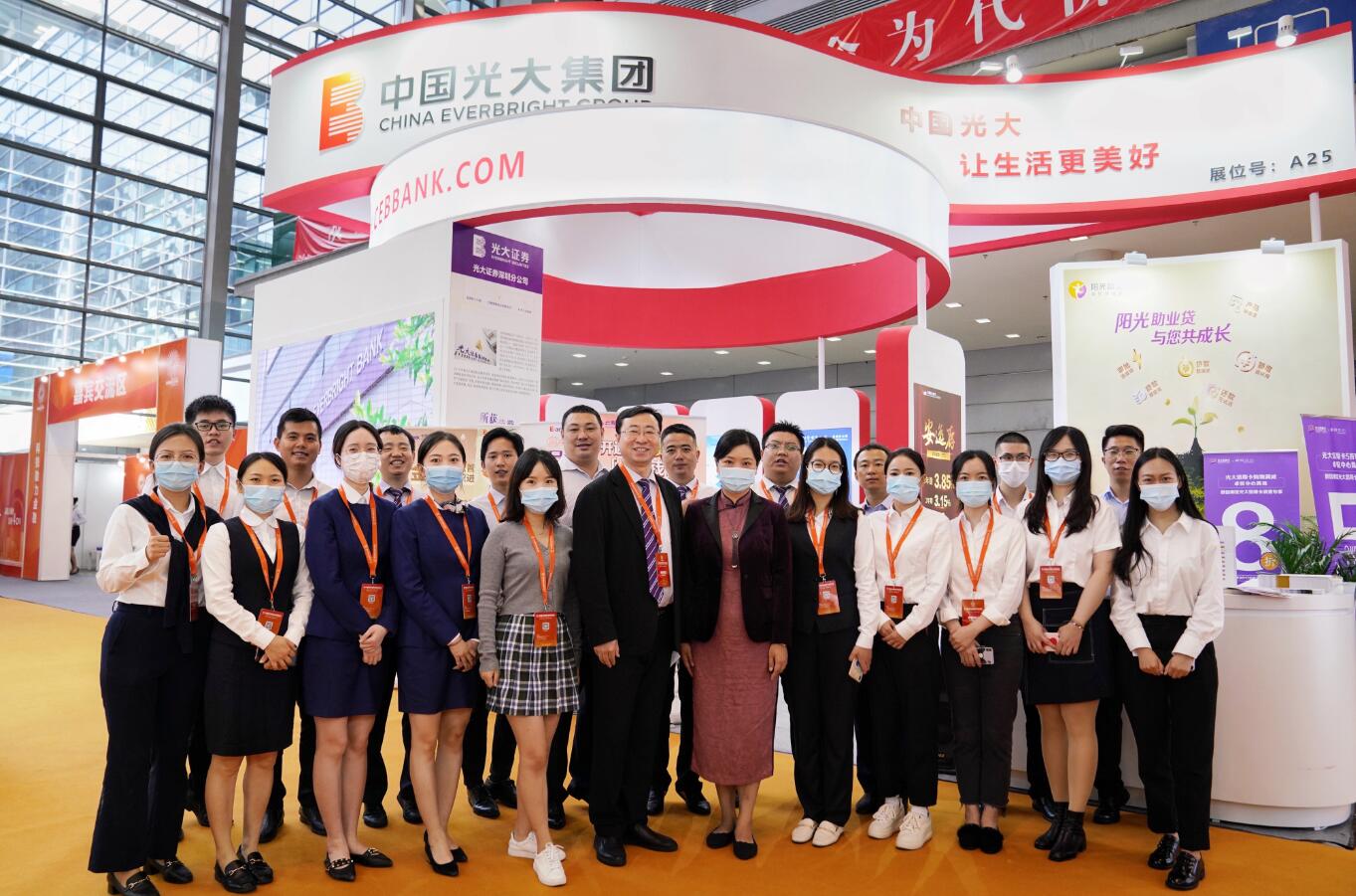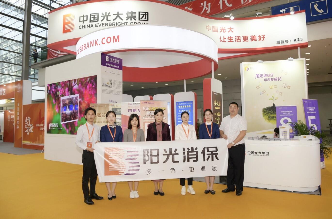深圳新聞網(wǎng)·見(jiàn)圳客戶端2020年11月5日訊 近日,第十四屆深圳國(guó)際金融博覽會(huì)在會(huì)展中心舉行。在這場(chǎng)金融盛會(huì)上,光大銀行深圳分行攜手光大集團(tuán)駐深單位——光大證券、光大保險(xiǎn)、光大信托、光大期貨、中青旅等參展,范圍涵蓋銀行、證券、保險(xiǎn)、期貨、信托等領(lǐng)域,向社會(huì)公眾展示了光大集團(tuán)金融科技創(chuàng)新、普惠金融、社會(huì)責(zé)任等各方面成果,受到與會(huì)各界關(guān)注。其中,中國(guó)光大銀行日前發(fā)布的金融消費(fèi)者權(quán)益保護(hù)品牌--“陽(yáng)光消?!?/span>也正式在深圳金博會(huì)亮相,光大銀行帶來(lái)的“陽(yáng)光”品牌矩陣讓參觀者印象深刻。