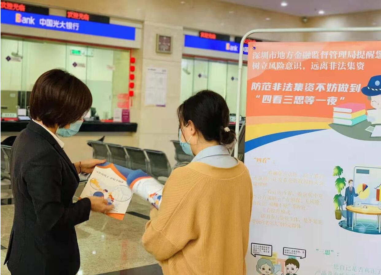 深圳新聞網(wǎng)·見圳客戶端2020年12月4日訊 近日,深圳市地方金融監(jiān)督管理局與深圳商報(bào)聯(lián)合舉辦的“守好錢袋子護(hù)好幸福家”防范非法集資巡展走進(jìn)光大銀行深圳分行。