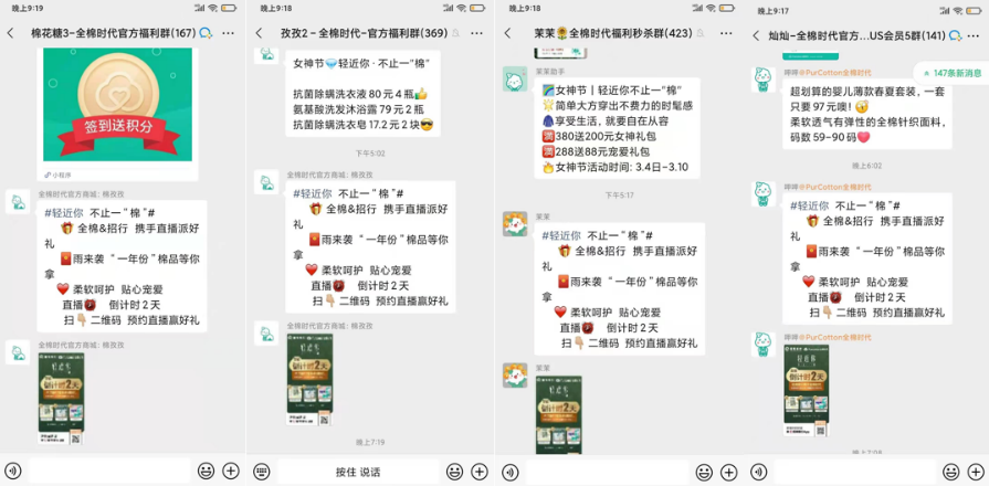 為了提升活動(dòng)效果以及節(jié)日噱頭,招行深圳分行積極向商戶爭取了全棉時(shí)代的直播禮品,直播當(dāng)天全棉時(shí)代為招行用戶提供價(jià)值50萬的禮品,同時(shí)在宣傳端,為了打造活動(dòng)熱點(diǎn),全棉時(shí)代在超過500個(gè)社群內(nèi)進(jìn)行活動(dòng)推送,招行端也積極爭取總行資源,在App、微信視頻號(hào)及朋友圈進(jìn)行宣傳。