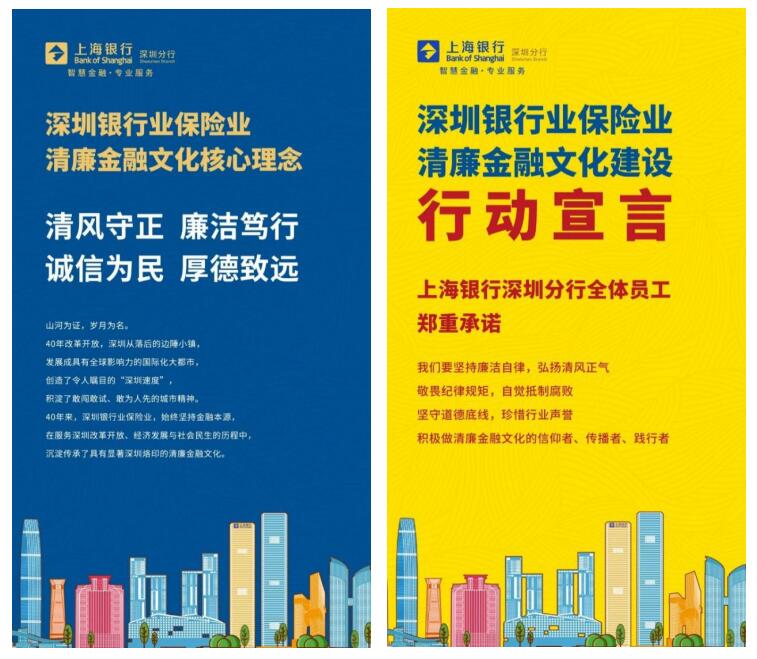 5月以來,上海銀行深圳分行按照深圳銀保監(jiān)局、深圳銀行業(yè)協(xié)會指導(dǎo)要求,秉持聯(lián)合性、統(tǒng)一性、持續(xù)性原則,統(tǒng)一啟動(dòng)宣教行動(dòng)日,在線上、線下等宣傳陣地多樣化宣傳標(biāo)志性統(tǒng)一宣教文案,形成強(qiáng)烈的清廉金融文化宣教主題,營造濃厚宣教氛圍。統(tǒng)一在分行內(nèi)部電梯間LED屏、餐廳電視屏、各網(wǎng)點(diǎn)電視顯示屏等載體上投放清廉金融文化宣教視頻;統(tǒng)一在網(wǎng)點(diǎn)走馬燈展示“深圳銀行業(yè)保險(xiǎn)業(yè)清廉金融文化核心理念—清風(fēng)守正、廉潔篤行、誠信為民、厚德致遠(yuǎn)”等宣教標(biāo)語;發(fā)布分行自制清廉金融宣教海報(bào),充分加入自身特色理念,融入我行智慧金融,專業(yè)服務(wù)的理念,并組織各單位在公眾號、微信、朋友圈積極學(xué)習(xí)轉(zhuǎn)發(fā),形成宣教合力。