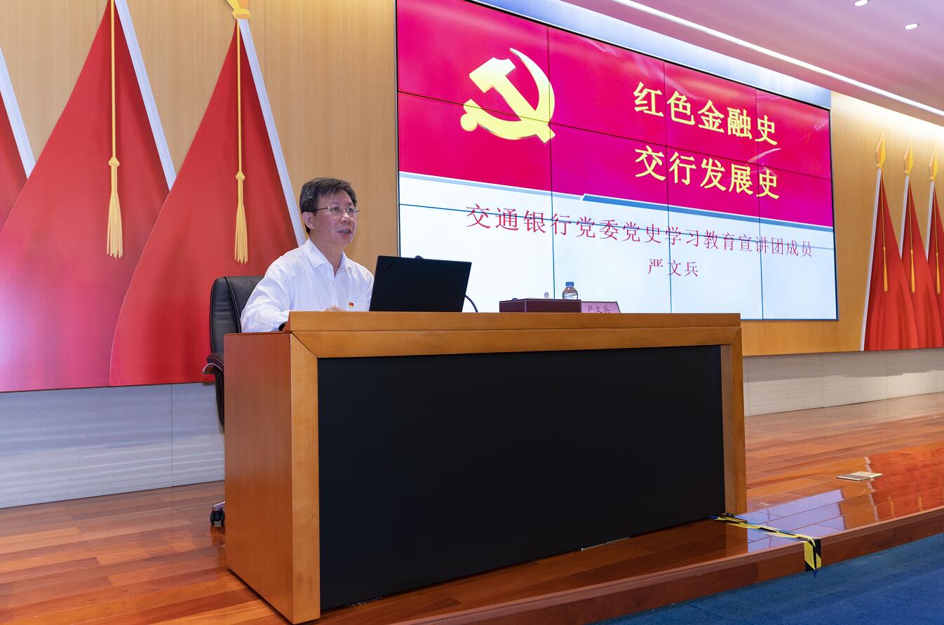 會(huì)上,交通銀行黨委黨史學(xué)習(xí)教育第三指導(dǎo)組組長嚴(yán)文兵同志及組員董傳俊同志、王赤梅同志分別以“紅色金融史與交行發(fā)展史”、“從黨章的發(fā)展演變看黨的百年歷程”、“我們?yōu)槭裁匆獙W(xué)黨史、怎么學(xué)好黨史”為主題進(jìn)行了專題宣講,強(qiáng)調(diào)開展黨史學(xué)習(xí)教育的重要意義,并通過案例展示、分享學(xué)好黨史的方式方法,為深圳分行黨委進(jìn)一步推進(jìn)黨史學(xué)習(xí)教育提供指導(dǎo)意義。