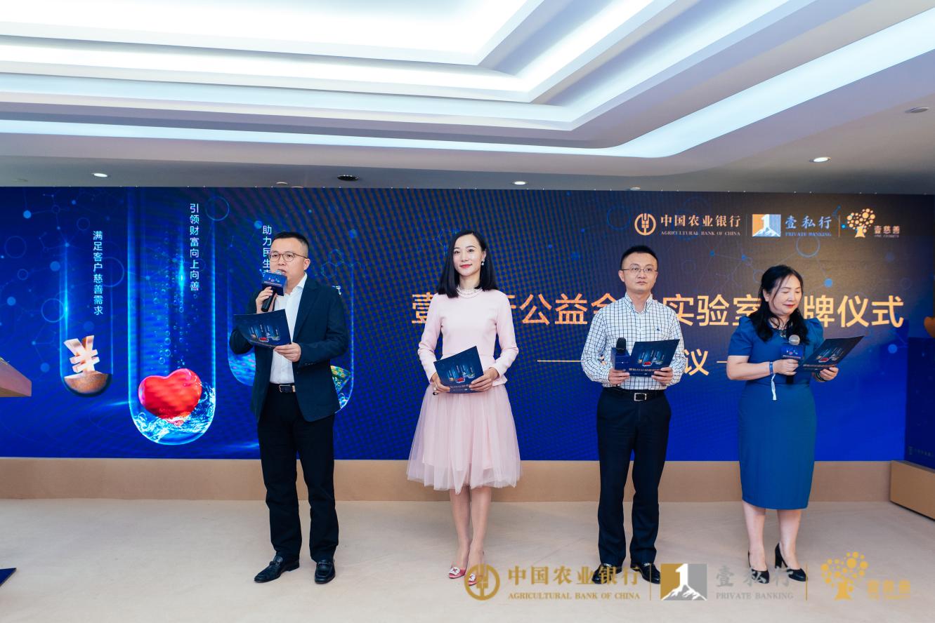 9月16日,中國農(nóng)業(yè)銀行總行私人銀行部負責(zé)人黃潞,深圳市社會組織管理局副局長白凌,深圳市工商聯(lián)黨組成員、專職副主席馮德崇,中國農(nóng)業(yè)銀行深圳市分行黨委委員、副行長王國彪,深圳市慈善會執(zhí)行副會長房濤,深圳市創(chuàng)新企業(yè)社會責(zé)任促進中心秘書長曾亞琳,共同為“壹私行公益金融實驗室”揭牌,公益金融實驗室正式落地深圳。