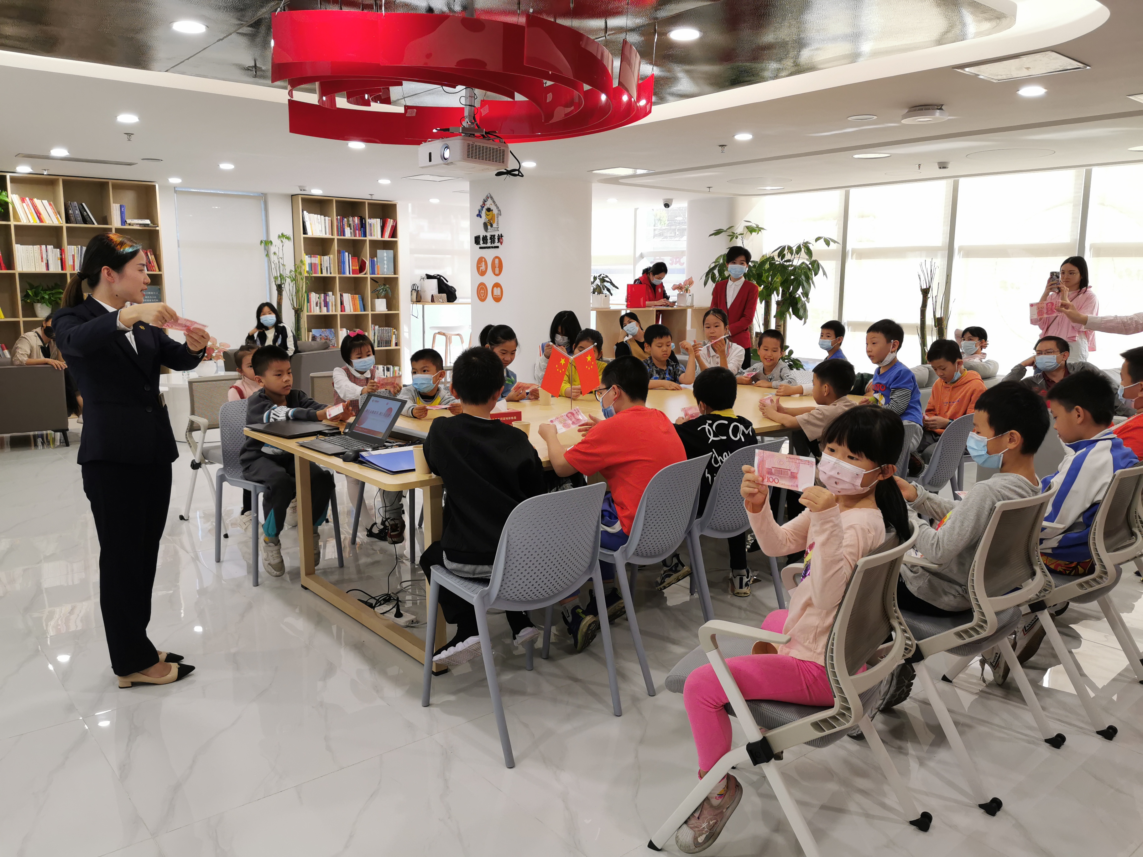 在此次活動中,華夏銀行深圳東門支行的金融安全守護者向小朋友們宣講防范電信詐騙、反假幣等金融基礎知識,播放由華夏銀行原創(chuàng)的金融知識短視頻《青少年反詐騙,這一課不可少》,通過主題宣講和游戲互動等方式讓小朋友們“學金融、懂金融、用金融、受益于金融”?;顒蝇F場,小朋友們積極參與游戲互動,在“寓教于樂”中對常見的金融陷阱有了初步了解,并對學習掌握金融知識產生濃厚興趣,紛紛爭當金融小衛(wèi)士。