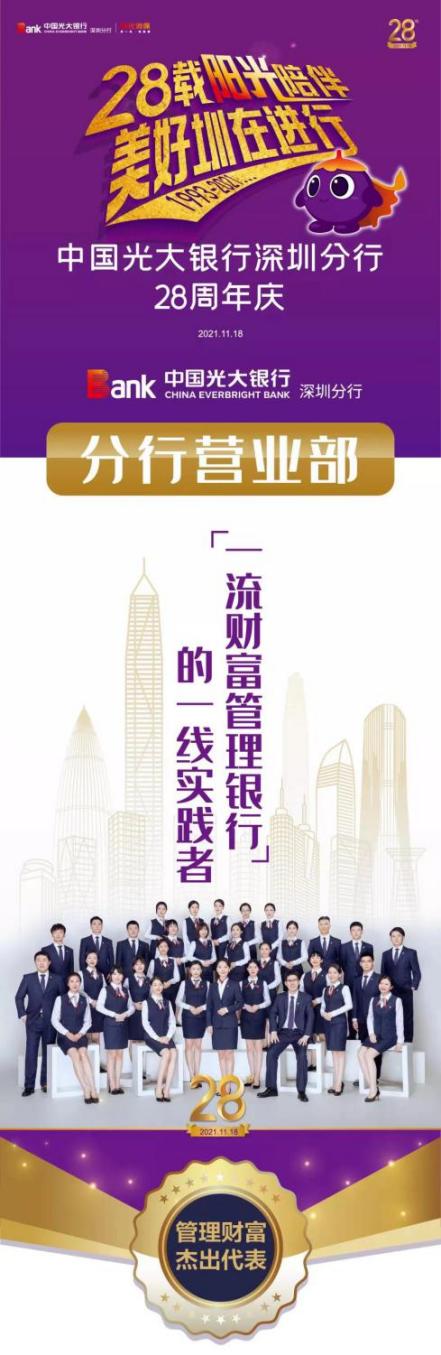 在成立28周年之際,光大銀行深圳分行開展28周年“十大最美光陰故事”評選包括管理財(cái)富、服務(wù)民生、支持實(shí)體經(jīng)濟(jì)、創(chuàng)新金融科技、履行社會(huì)責(zé)任等五大領(lǐng)域,旨在評選出28年來在這五大領(lǐng)域的杰出案例,樹立標(biāo)桿,為分行發(fā)展打造“頭雁”矩陣。引領(lǐng)分行各項(xiàng)業(yè)務(wù)邁入高質(zhì)量發(fā)展新臺(tái)階。讀懂了“十大最美光陰故事”,也就讀懂了光大銀行深圳分行的奮斗、執(zhí)著和希冀。