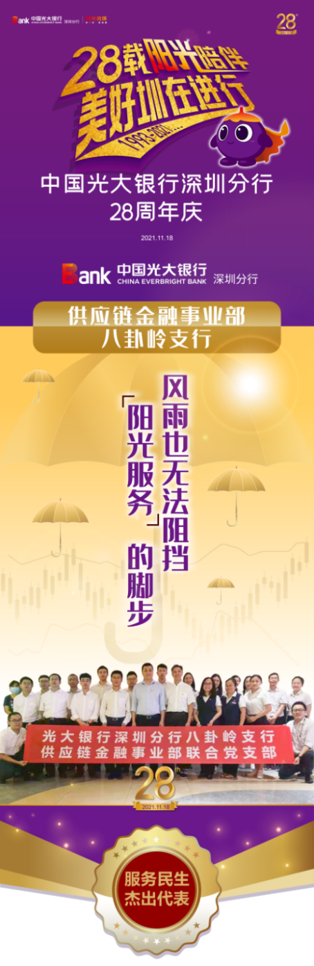 供應(yīng)鏈金融事業(yè)部與八卦嶺風(fēng)雨無阻的“陽光服務(wù)”,是光大銀行深圳分行積極踐行總行“陽光服務(wù)”理念的縮影。