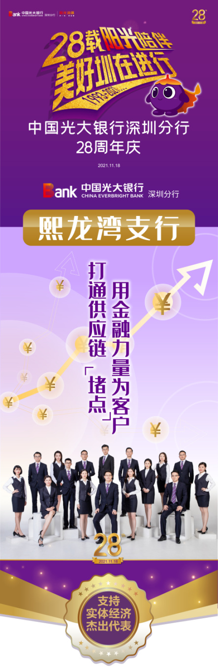 該支行始終秉承“客戶滿意,追求卓越”的價值觀,用金融力量為客戶打通供應(yīng)鏈“堵點”,與一大批優(yōu)質(zhì)企業(yè)建立了良好的合作關(guān)系。截止2021年11月,支行在分行內(nèi)對公客戶數(shù)量排名靠前。因此,在深圳分行28周年“十大最美光陰故事”評選中,熙龍灣支行榮獲支持實體經(jīng)濟(jì)杰出代表。