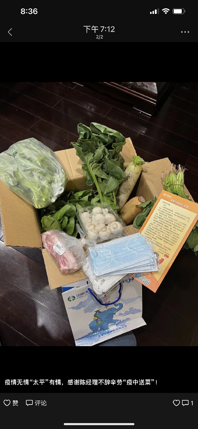 太平人壽代理人,紛紛化身太平守“滬”者,為疫情封控中的廣大客戶雪中送炭,切實(shí)解決了搶菜難的問題。據(jù)悉,活動推出至今,已有上百位客戶收到了“太平守護(hù)者”送上的暖心慰問,越來越多的客戶感受到了太平的溫暖。