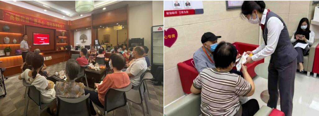 各網(wǎng)點(diǎn)邀請附近的老年客戶到行參與講座,以目前典型的養(yǎng)老騙局作為切入點(diǎn),通過播放分行自制養(yǎng)老防詐小短片,以生動(dòng)的語言向老年人揭示一些宣稱以房養(yǎng)老為名,誘騙老年人抵押房產(chǎn)購買“高收益”理財(cái)產(chǎn)品等進(jìn)行非法集資詐騙的陷阱,向老年人普及新型詐騙趨勢,拓寬信息交流渠道,充分發(fā)揮銀行金融知識宣傳的網(wǎng)點(diǎn)效應(yīng)。
