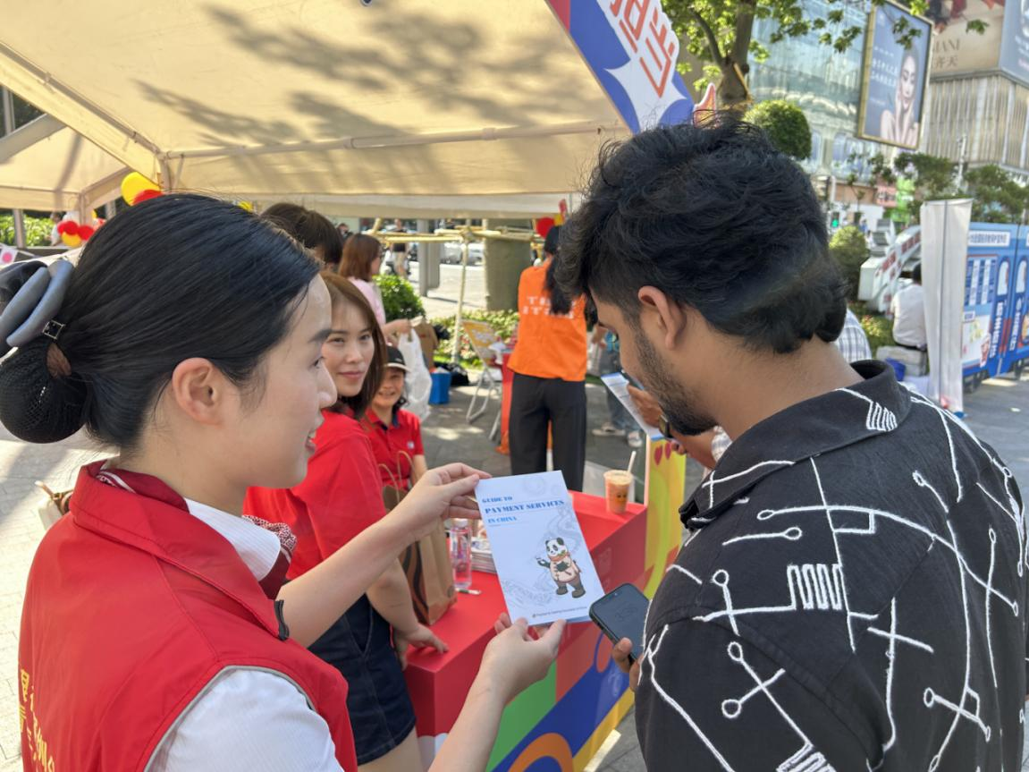 廣發(fā)銀行深圳分行員工為到場(chǎng)的外國友人送上英文版《外籍來華人員支付指南》