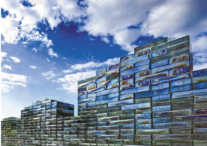 最具代表性的是盛姍姍受邀參加2009年第53屆威尼斯雙年展的作品《開放的長城》,它長約22米,由2200多塊玻璃磚組成,對(duì)應(yīng)中國長城存世的2200多年歷史,通身透出七彩光芒;《文字演變》描述了象形文字從原始的狀態(tài)到當(dāng)代文字的演變;《舞動(dòng)的絲帶》則以中國當(dāng)代的絲帶舞為基礎(chǔ),形成色彩與絲帶交織的造型,而這種造型代表了泛文化在公共建筑內(nèi)的交融。此外,《生生不息的竹子》《華夏青銅時(shí)代系列》《算盤》等作品,都可以找到鮮明的中國傳統(tǒng)文化元素。