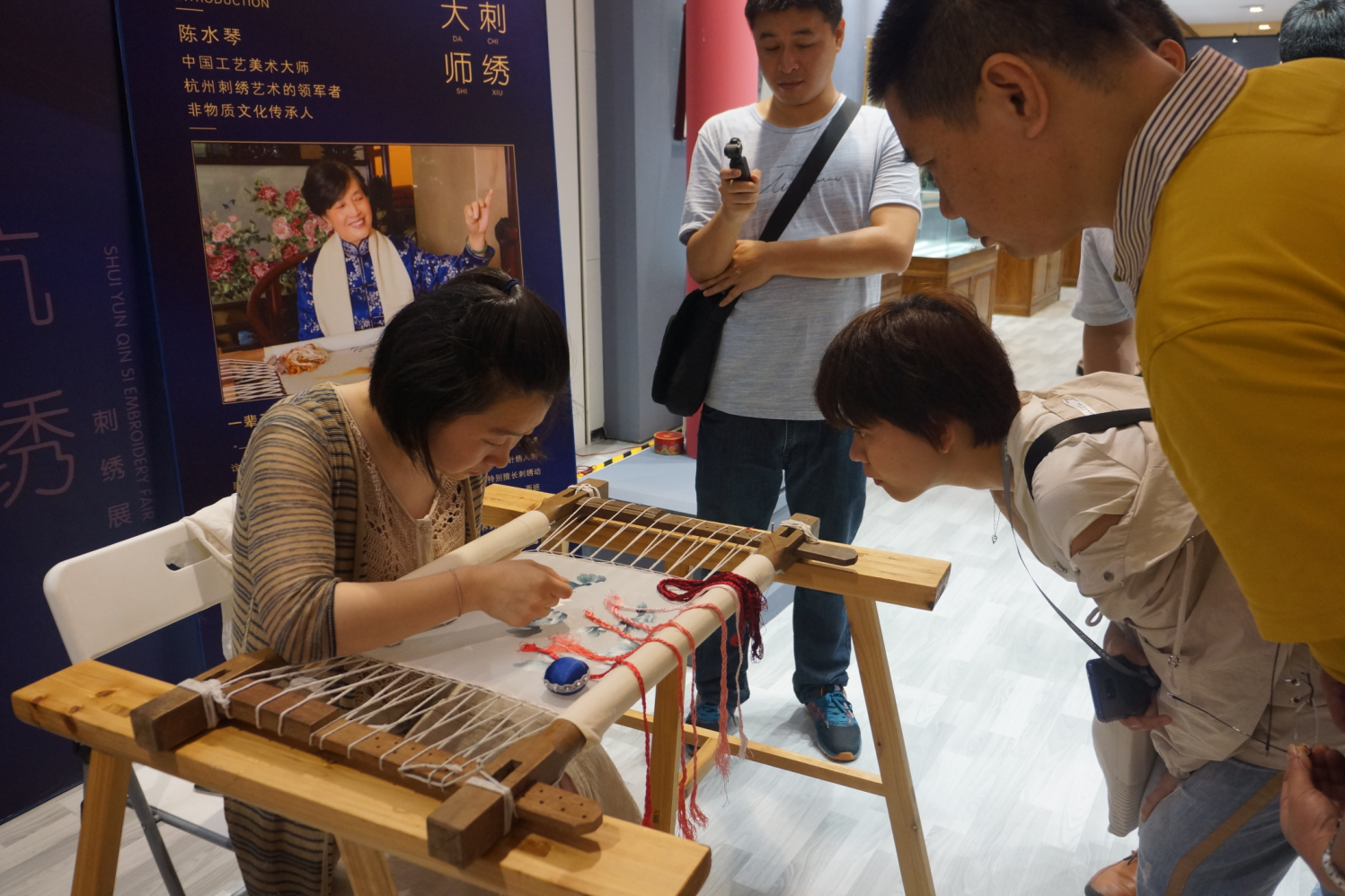 中國工藝美術(shù)大師陳水琴親臨現(xiàn)場(chǎng),為九方藝術(shù)空間揭牌,現(xiàn)場(chǎng)指導(dǎo)此項(xiàng)技藝的傳承人為現(xiàn)場(chǎng)觀眾進(jìn)行技藝演示,同時(shí)為參加活動(dòng)的嘉賓和藝術(shù)愛好者們開展簽名送書活動(dòng)。讓更多的人了解中華民族的優(yōu)秀文化遺產(chǎn),向大眾更好地宣傳、展示杭繡這項(xiàng)非物質(zhì)文化遺產(chǎn)的魅力,弘揚(yáng)和傳播我國的優(yōu)秀傳統(tǒng)文化。展覽至19日,廣大市民可前往參觀,體驗(yàn)杭繡之美。