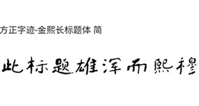 金熙長先生創(chuàng)作的《方正字跡-金熙長標題體》,以嚴謹?shù)膶W術態(tài)度,經(jīng)過近四十年來一直不斷的歷代名碑名帖的錘煉化虛,終將難字拆開成“又佳”,形成自已目前“雄渾靜穆與高古野逸為一爐的居士書風面貌”。面對《方正字跡-金熙長標題體》,讀者只要將目光稍作停留,就不難發(fā)現(xiàn)該字體有以下特色——
