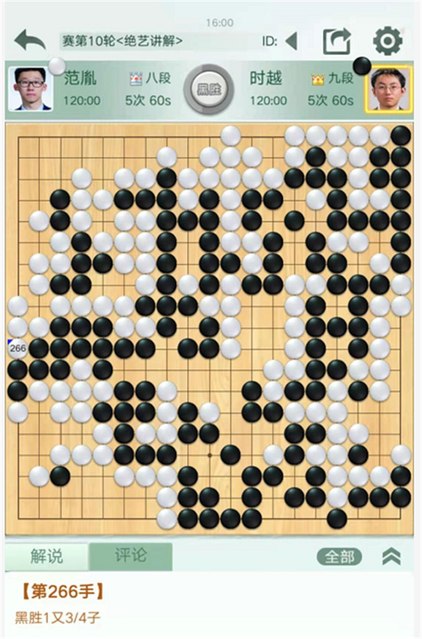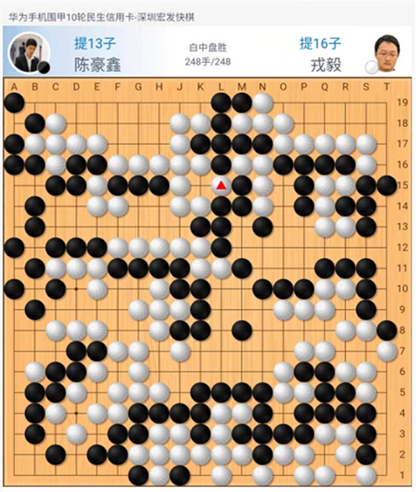 第一臺,快棋,戎毅執(zhí)白勝陳豪鑫。黑棋開局在右邊以及中盤在左上的下法略嫌松緩,白領(lǐng)先。之后黑棋沖擊白棋中央致使左邊形成打劫,白棋簡明處理后以較大優(yōu)勢進(jìn)入官子。最后黑棋為了強撐一目棋在自己空里出現(xiàn)打劫,在黑棋需要找很損的劫材時候黑方認(rèn)輸。