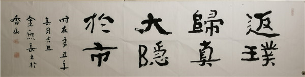 2011年隱居廣東中山,處江湖之遠亦不忘躬耕,以書立德、以筆潤身,專注于佛法經(jīng)文、家學文化和百家家訓書法的研究,并創(chuàng)辦五福書院,通過教授古琴、書法、四書誦讀等形式開班授課,以中國傳統(tǒng)文化踐行家學文化。歸隱而不忘憂國,金熙長先生自隱居以來,在珠海、中山、深圳、上海等地舉辦了多次《以書立德、以筆潤身——常福居士百家家訓、百種心經(jīng)書法作品全國巡展》;2020年8月,金熙長先生的《方正字跡-金熙長標題體》在方正字庫正式上線。