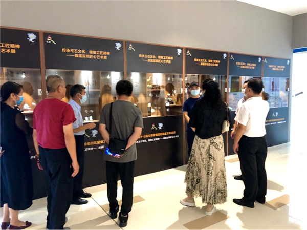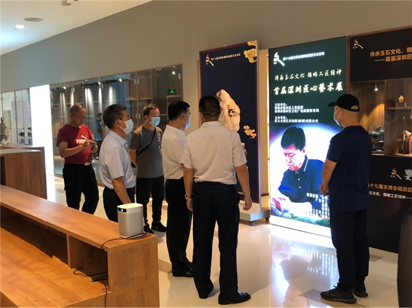 活動開展期間,深圳市民協(xié)專職副主席張晉文、深圳市文創(chuàng)體社會組織黨委第一書記、深圳市群眾文化學(xué)會會長楊素賢、深圳市深港文藝家交流協(xié)會主席、福田區(qū)文化議員王廉運等多位嘉賓參觀了匠心藝術(shù)展,陳宗藝現(xiàn)場介紹了玉雕作品,中國工藝美術(shù)大師錢高潮、中國工藝美術(shù)大師裴永中等也前來參觀交流。