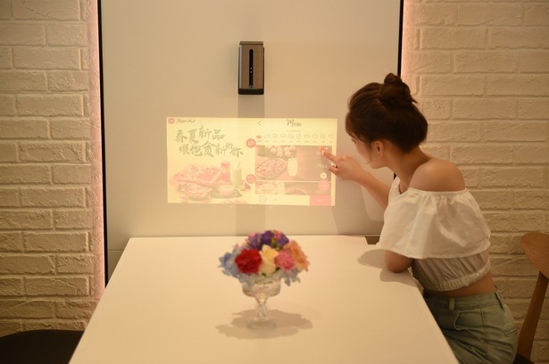 除了“情緒地帶”,智慧餐廳還提供了多元化的互動服務(wù)。門店等位區(qū)有一整面具有奇幻動感效果的投影互動墻,通過獨特的觸摸啟動可以探索必勝客的比薩從原料種植、加工、生產(chǎn),一直到制作成品、奉客、外送等一系列過程,為顧客提供趣味十足的多感官虛擬互動體驗,讓無聊的等位時間也變得興味盎然。