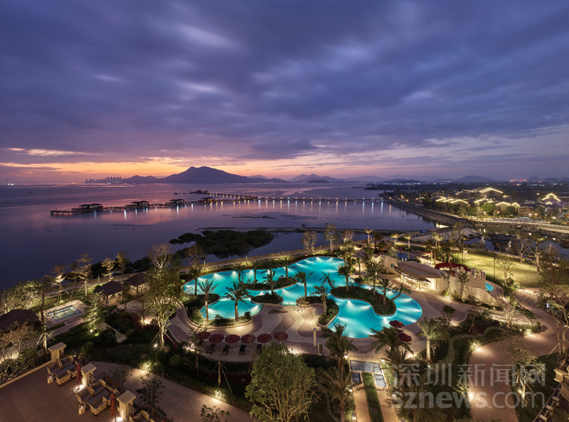 家長可能更關心酒店的親子活動設施。記者在這里看到,酒店有獨具特色的兒童天地、戶外主題兒童樂園、多樣電子游戲設備的玩咖及淘氣堡,為孩子提供專用寬敞的游戲空間和每天豐富的親子活動。閑暇之余,一家大小可縱身躍入泳池盡情暢玩一番,包含家庭泳池、兒童游泳池、水上娛樂池,及按摩池。傍晚時分,還可漫步在海上棧橋、生態(tài)趣樂園、水云天古鎮(zhèn),感受醉美夕陽。