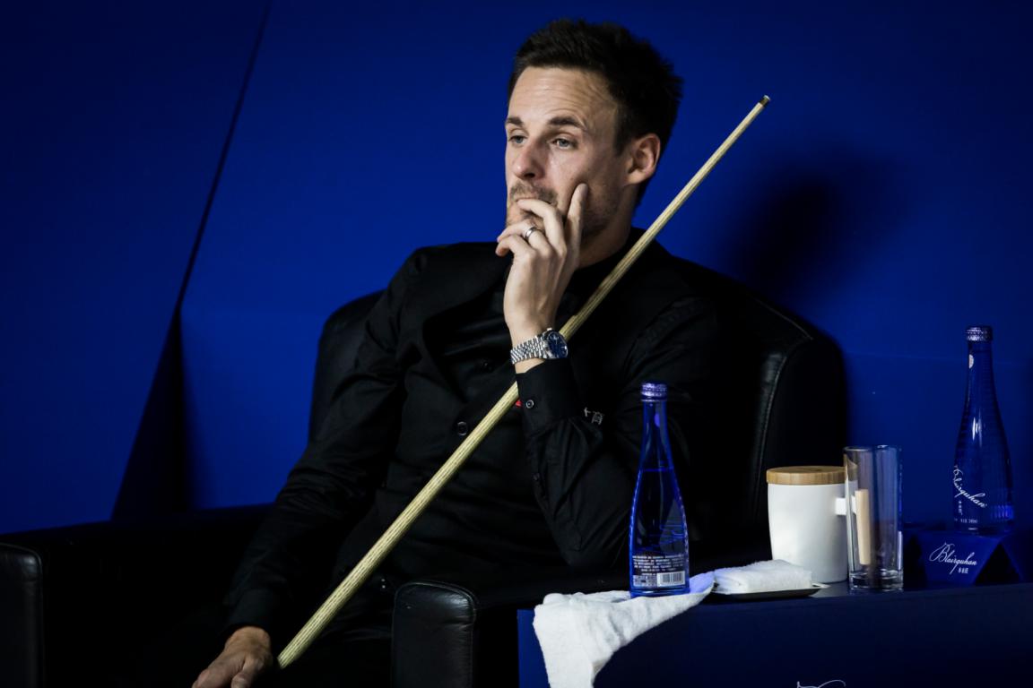 斯諾克可以說是十分講究視覺與氛圍的運(yùn)動(dòng),哪怕不是“戲劇天才”如奧沙利文,當(dāng)所有選手按照臺(tái)球比賽的禮儀穿著西裝馬甲、領(lǐng)結(jié)、襯衣、西褲和皮鞋、比賽全程都恪守著紳士的美德——沉默和冷靜;當(dāng)他們?cè)诤谏ひ紊仙宰餍菹?優(yōu)雅地飲用玻璃瓶裝的Blairquhan本來旺礦泉水或蘇打水……觀眾有時(shí)候很難分辨,這到底是一場(chǎng)競(jìng)技體育,還是一場(chǎng)真實(shí)的舞臺(tái)劇。