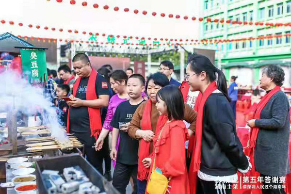 “太熱鬧了!離開湖南老家來到深圳后,從來沒有體會到這么熱鬧喜慶的場面。這么多人一起過年、吃宴席,也只有在湖南老家過年的時候才能感受到。農(nóng)耕記傳承湖南過年習(xí)俗和文化,是對傳統(tǒng)文化的繼承和發(fā)揚,值得點贊?!崩霞以?衡陽的顧客小羅在現(xiàn)場說到。