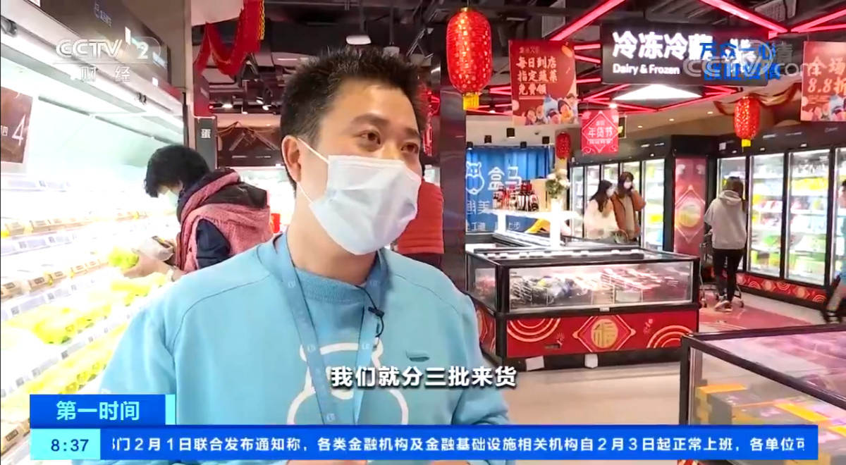 在政府持續(xù)保障貨源供應(yīng)的背景下,鐘天平所在的超市加大了批發(fā)市場(chǎng)進(jìn)貨的頻次,到了初六,供應(yīng)狀況已經(jīng)恢復(fù)正常。“像蔬菜的銷量是平常十倍左右,分三批來(lái)貨,我們每天要補(bǔ)充三次貨架,早上一次、中午一次、晚上來(lái)一次?!?/p>