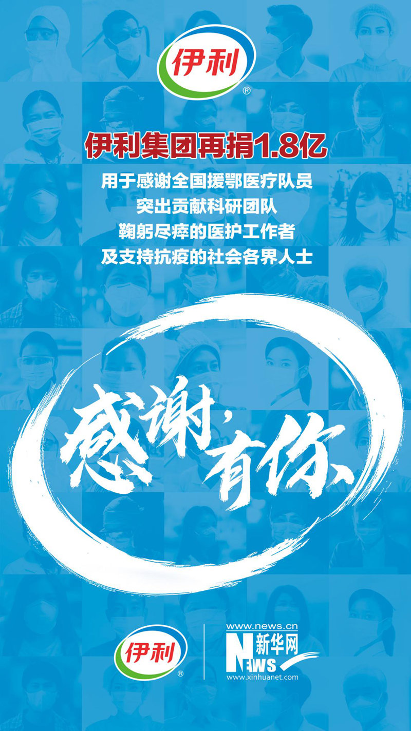 新華網(wǎng)北京3月26日電(胡可璐) 在這場(chǎng)戰(zhàn)“疫”中,無(wú)數(shù)平凡英雄帶給我們最多感動(dòng),他們以“逆行者”的無(wú)畏和擔(dān)當(dāng)筑起疫情防控生命線,守護(hù)著人民,守護(hù)著國(guó)家。3月26日,伊利集團(tuán)再捐1.8億,第一時(shí)間購(gòu)買京東購(gòu)物卡,贈(zèng)送給全國(guó)所有援鄂醫(yī)療隊(duì)員,向他們提供全年?duì)I養(yǎng)支持;向鐘南山院士、李蘭娟院士、程京院士團(tuán)隊(duì)捐贈(zèng)1500萬(wàn)元,感謝科研工作者做出的突出貢獻(xiàn),共同推動(dòng)健康領(lǐng)域的科研攻關(guān);第一時(shí)間購(gòu)買京東購(gòu)物卡,贈(zèng)送給這次抗擊疫情中因公殉職醫(yī)護(hù)工作者的家屬,為他們提供連續(xù)十年的營(yíng)養(yǎng)支持;同時(shí)也向奮戰(zhàn)在抗疫一線的社會(huì)各界人士提供營(yíng)養(yǎng)保障。責(zé)任無(wú)界,大愛無(wú)疆,伊利累計(jì)捐贈(zèng)額度將達(dá)2.8億,共迎抗疫勝利。