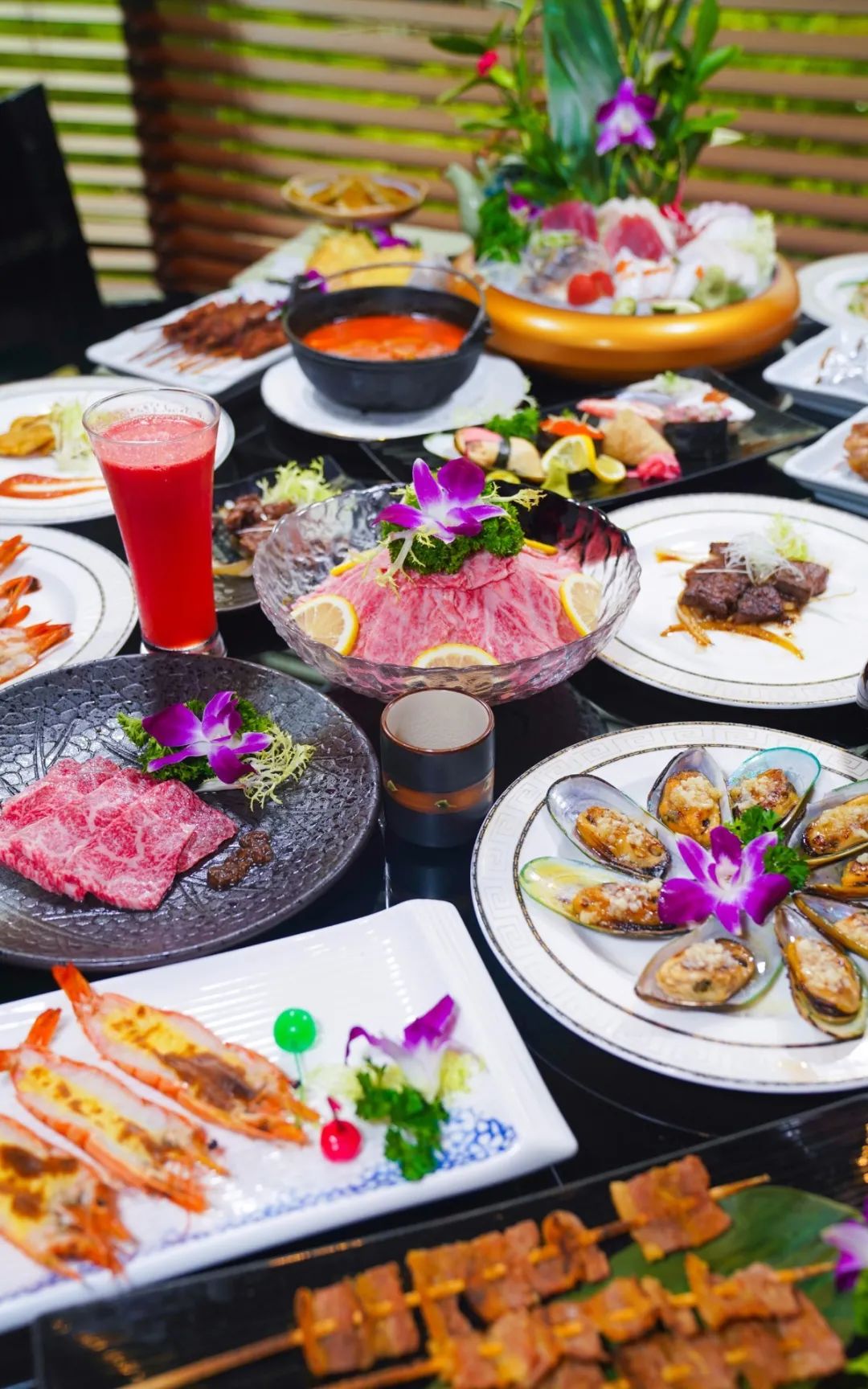 薄至0.1mm的澳洲雪花牛肉、主廚力推的招牌法式鵝肝、烤物之魂網(wǎng)燒牛肉、鐵板燒烤、手握壽司......110+款精致日料任點(diǎn)任食,鋪滿一大桌,實(shí)現(xiàn)日料自由,分分鐘吃出1000+的日料既視感。