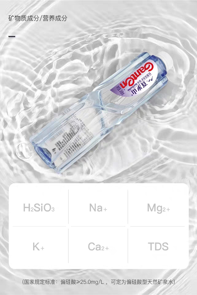 經(jīng)小編了解,百歲山天然礦泉水是采自于地下深層巖石裂隙中,從不使用湖水、河水、水庫水等地表水。而且,百歲山的礦泉水源具有《采礦許可證》,屬于國家液體礦產(chǎn),如同金礦銀礦。一經(jīng)開采可直接飲用,水源天然無污染,還含有高偏硅酸,以及鉀、鈉、鈣、鎂等豐富礦物質(zhì)及微量元素。正因?yàn)檫@樣優(yōu)質(zhì)珍貴的礦泉水源,才成就了水中貴族獨(dú)一無二的品質(zhì)。