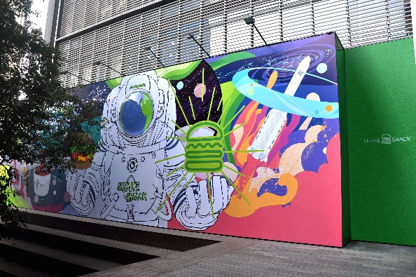 Shake Shack一直熱衷于將品牌文化、潮流趨勢與當?shù)厣罘绞较嗳诤?,為品牌帶來全新靈感。作為深圳首店正式開業(yè)前的預告,Shake Shack攜手深圳先鋒藝術家李昱昱 ? (Y oyo L ee )在深圳萬象天地特別推出了別具匠心且富有致敬意義的巨幅創(chuàng)意圍擋。