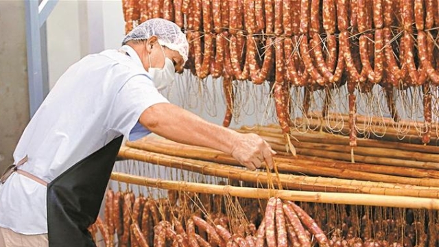 公明祖?zhèn)鲝V式臘腸制作工藝和麥?zhǔn)瞎欧ㄖ谱鞴に囅嘟Y(jié)合的臘腸,風(fēng)味獨(dú)特,色澤飽滿(mǎn),是餐桌和飯館一道佳品。