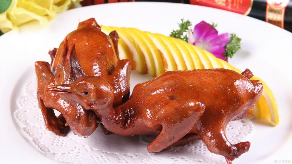 燒鵝外表金黃鮮亮,香氣濃郁,皮香脆可口,肉汁中帶有韌性,在舌尖上流淌。
