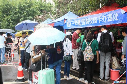 記者隨后跟訪(fǎng)了一名新生報(bào)到入學(xué)的流程。8時(shí)30分,新生小楊在學(xué)門(mén)口被學(xué)生志愿者帶到所在院系報(bào)到。報(bào)到有兩種方式,可選擇現(xiàn)場(chǎng)報(bào)到,也可選擇網(wǎng)絡(luò)報(bào)到,小楊選擇的網(wǎng)絡(luò)報(bào)到。
