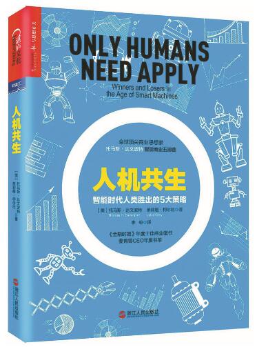 《人機(jī)共生:智能時(shí)代人類勝出的5大策略》試圖就以上問題釋疑。作者托馬斯·達(dá)文波特是全球頂級的商業(yè)思想家,提出并發(fā)起了影響全球企業(yè)界的流程再造、知識管理、注意力經(jīng)濟(jì)等。我們所知道的大數(shù)據(jù)、數(shù)據(jù)分析競爭,也是達(dá)文波特首創(chuàng)的概念。他探討了“機(jī)器”和“智能”取代人工崗位與技能的可能性,提出了人與人工智能共存的制勝未來策略,并專門就改進(jìn)教育體系提出了一系列建議。